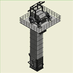 由于水泥企業(yè)規(guī)模的不斷擴大和節(jié)能減排的要求,在國內(nèi)外采用輥壓機用于生料終粉磨和水泥聯(lián)合粉磨也越來越多,其單臺的能力也不斷擴大,使得與之相配套的輸送設(shè)備-單臺提升機的能力也在提高。由于此處的物料是塊狀的且磨琢性很大,因此只有板鏈提升機能夠適用。但由于輥壓機出輥物料不穩(wěn)定及磨琢性大等特性及生產(chǎn)工藝問題,經(jīng)常造成提升機堵料、漏料、設(shè)備振動、電機頻繁跳停、物料回料量大等現(xiàn)象,嚴重的影響了整個系統(tǒng)的運轉(zhuǎn)率。我公司集多年板鏈提升機設(shè)計和制造經(jīng)驗,開發(fā)出了適用于此工藝系統(tǒng)的大輸送量的大型板鏈斗式提升機,使得整個工藝系統(tǒng)不因板鏈斗式提升機的故障而影響整個系統(tǒng)的運轉(zhuǎn)率。